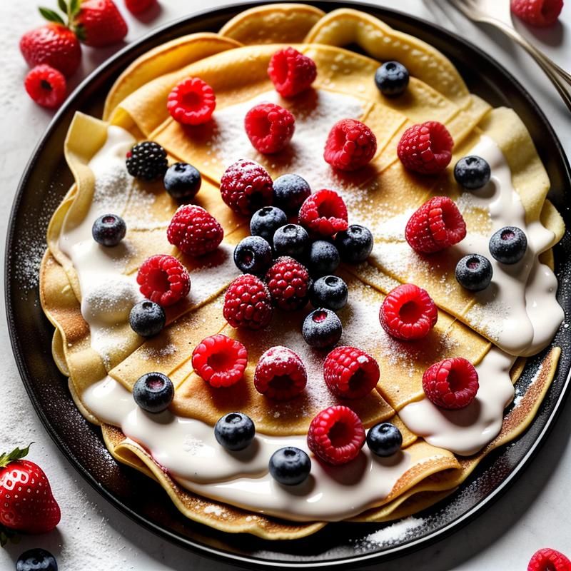 Crêpe garnie de fruits rouges frais et d’une touche de chantilly.