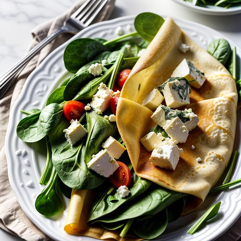 Crêpe remplie de légumes frais de saison et d’une sauce légère.